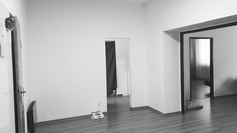 Projekt rekonštrukcie trojizbového 100 m2 veľkorysého bytu v tehlovom bytovom dome z 50.rokov 20.storočia v centrálnej mestskej zóne Banskej Bystrice počítal s kompletnou výmenou vrstiev a skladieb podláh, stropov a stien ako aj inžinierskych sietí a doplnenia podlahového kúrenia a rekuperácie vzduchu, Premodelovaním vnútornej dispozície sa cielilo na modernú, otvorenú dispozíciu dennej zóny.